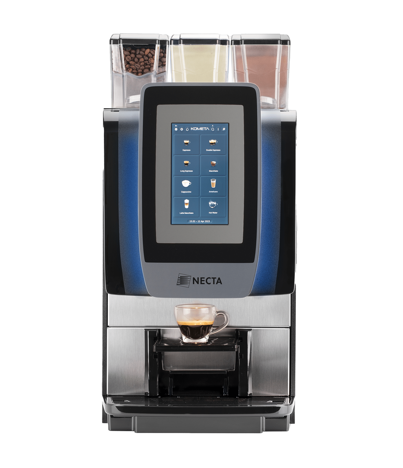 La Necta Kometa est une machine automatique compacte et polyvalente, parfaite pour les bureaux, coffee shops, boulangeries, hôtels et commerces de proximité. idéal pour 80 cafés par jour, avec une large variété de boissons chaudes.